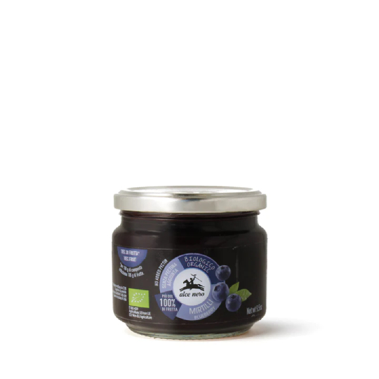 Alce Nero organic blueberry compote is characterized by an intense and sweet, slightly sour flavour. It is prepared with organic blueberries and without the addition of pectin. The delicate processing allows you to obtain a compote with a soft consistency and a good fruit flavour; it is ideal for spreading and suitable for many other uses.