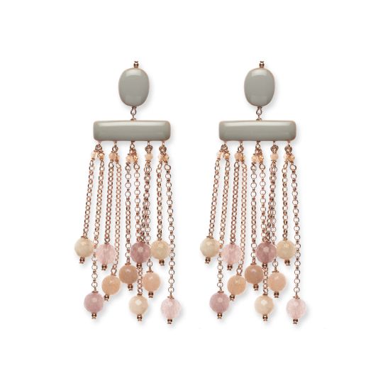 Pendientes Stone Grey de madera lacada y esmaltada a mano, metal con baño de oro rosa