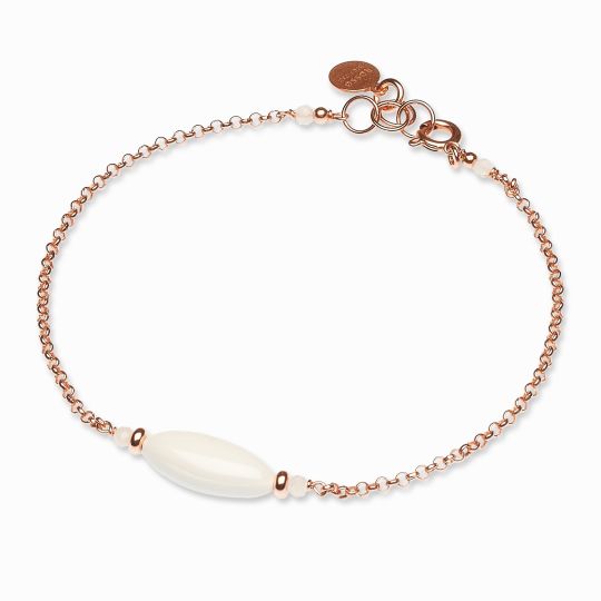 BRACELET LUNE BLANCHE BOIS LAC. ET SMALT. À LA MAIN, AR.925 PL