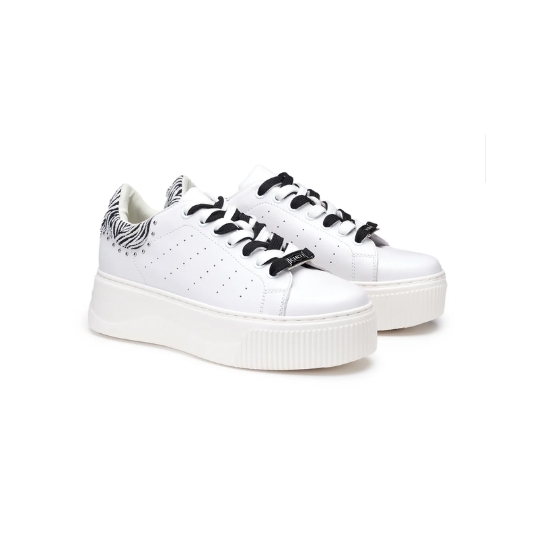 Dettagli animalier per le nuove sneakers PERRY in pelle firmate Cult per questa primavera/estate. Sono caratterizzate da lacci di color bianco e/o nero, da un contrafforte a contrasto in stampa zebrata e sono impreziosite da piccole borchie metalliche per un effetto davvero glamour. Da indossare sotto un vestito slim e blazer per un mix moderno e d'effetto.
