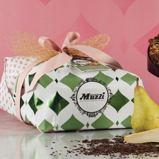 La Colomba pere e cioccolato, vuole abbinare il delicato sapore delle pere semi candite provenienti dal nostro territorio Italiano e il sapore inconfondibile delle gocce di cioccolato fondente. Ricoperta da glassa, mandorle e granella croccante di cacao. Cubetti di pera Williams semi candita da sapore delicato prodotti in Italia. LA GRAN CLASSICA, è la linea di punta dell Antica Pasticceria Muzzi. Un trionfo di eleganza e sobrietà che trova il favore di un pubblico raffinato e attento alla cura dei particolari. Un armonia visiva che contempla elementi passati rivisitati in chiave moderna esaltando la vasta gamma di gusti. Comprare una colomba Gran Classica significa aderire a quel preciso manifesto estetico che esalta un prodotto dalla bontà indiscussa.