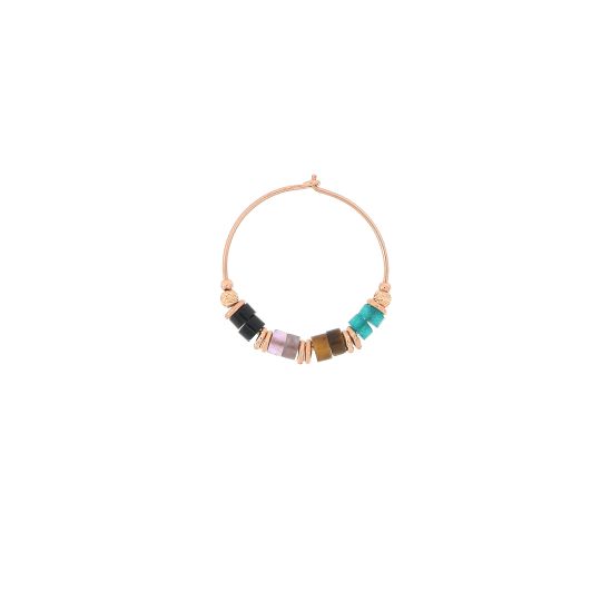 Pair of hoop earrings diameter 25 in 925 silver in rose gold galvanic bath and aulite stones. Features blue quartz, amethyst and black agate stones.