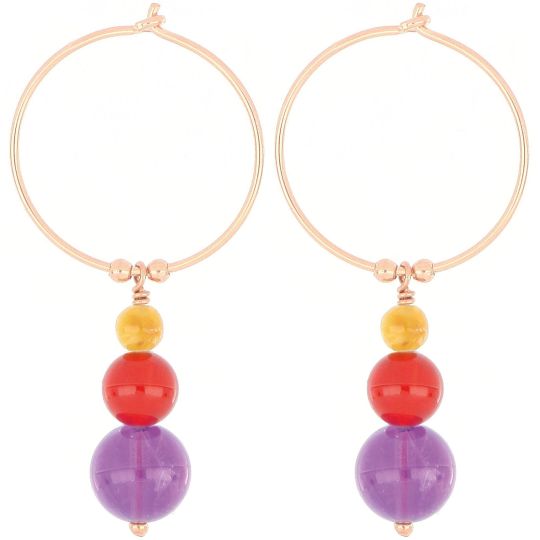 Paar Hebelohrringe aus 925er Silber in einem galvanischen Bad aus Roségold und gealtertem Silber. Es gibt fünf weiße Perlen unterschiedlicher Größe. Die Gesamtlänge des Ohrrings inklusive Hebel beträgt 10 cm.