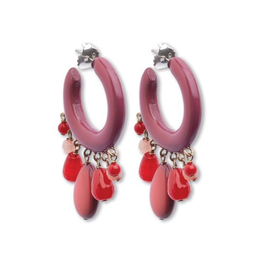 Pendientes Sinfonia Rosa de madera lacada y esmaltada a mano, metal con baño de oro rosa